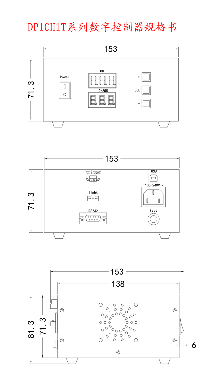 DP系列电源是SECSOON公司为驱动LED光源而设计的可编程数字控制器。其具有以下几种功能:255级亮度调节功能、计算机通信功能(RS232接口或者USB接口)、触发功能(软件触发和硬件触发均可)。通过RS232接口将电源控制器与计算机相连,即可通过软件远程对LED光源实现255级亮度调节功能,并可远程控制LED光源的开关,可大大延长LED光源的使用寿命,尤适用于机器视觉行业的LED型光源的应用。