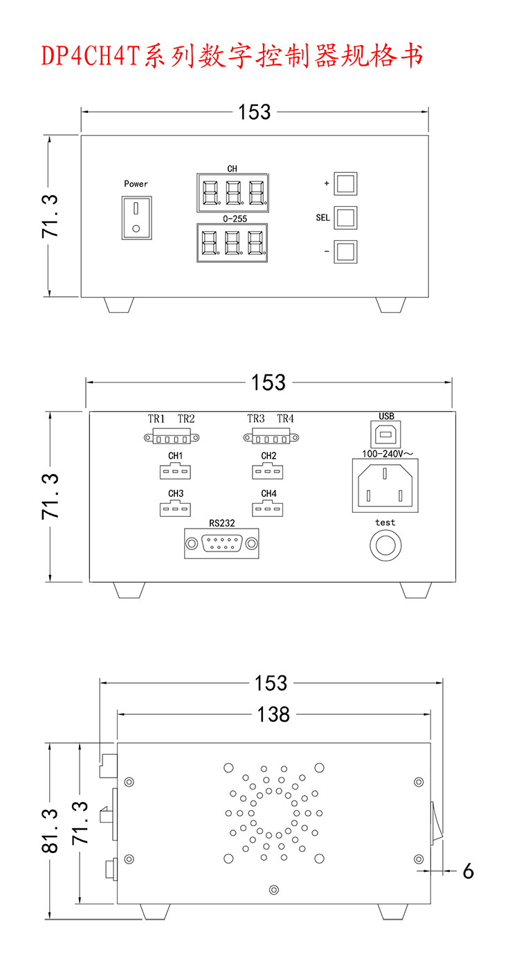 (DP为数字控制器,4CH为4通道输出,4T为4通道外触发控制,前面两个问号代表电压,后面两个感叹号代表电流/功率)